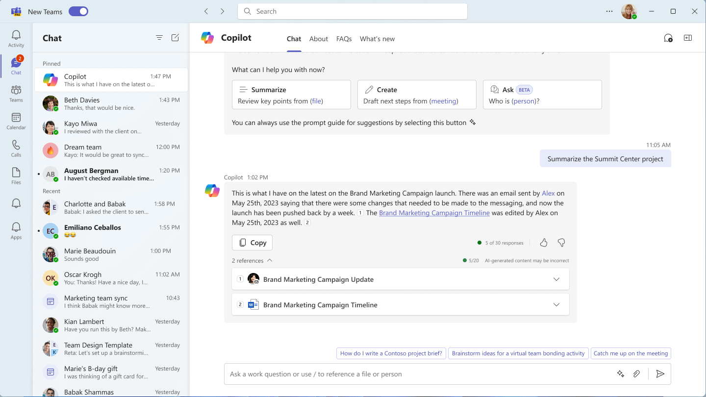 If you’re often spending time searching for the right chat message or trying to summarize a chat discussion, you’ll want to try out Microsoft Copilot in Chat.
