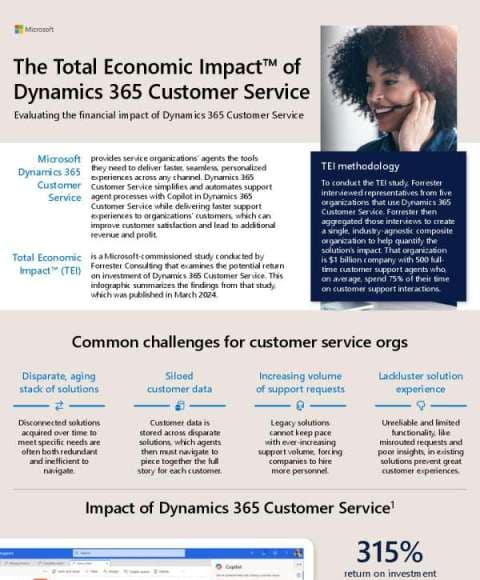 How much could an investment in #Microsoft Dynamics 365 Customer Service impact your bottom-line? Read this Total Economic Impact (TEI) conducted by Forrester Consulting that examines the potential 315% return on investment of Dynamics 365 Customer Service. DM us for an assessment.